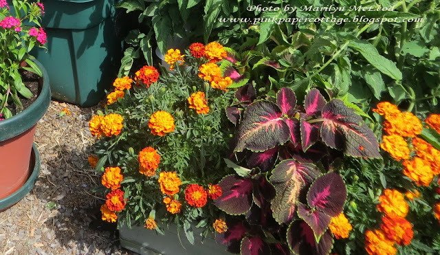 | Marigolds and coleus... didn't think the coleus would grow outside here in the heat, but it's doing great! |